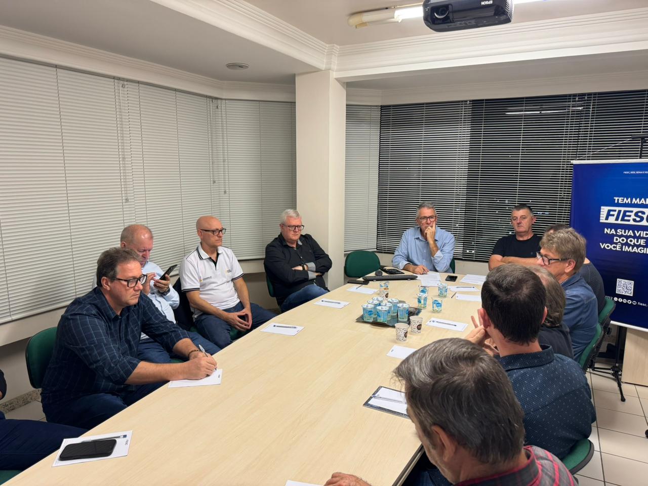 A reunião mensal da Vice-presidência da FIESC (Alto Uruguai) e diretores de Sindicatos Patronais da Indústria foi realizada nesta quarta-feira (18) e contou com a presença de representantes da Prefeitura de Concórdia. Em pauta, estiveram temas como habitação, acessibilidade, turismo e infraestrutura. O secretário de Desenvolvimento Econômico, Leocergio Sarturi, apresentou ações em andamento, incluindo a regularização da área industrial, parcerias para o Centro de Inovação, além de investimentos no setor de turismo, com destaque para a proposta de rampas de acesso ao lago da Usina de Itá. Já o secretário de Finanças, Artêmio Ortigara, detalhou projetos na área habitacional e de pavimentação rural, ressaltando o apoio do Governo do Estado e da CELESC.