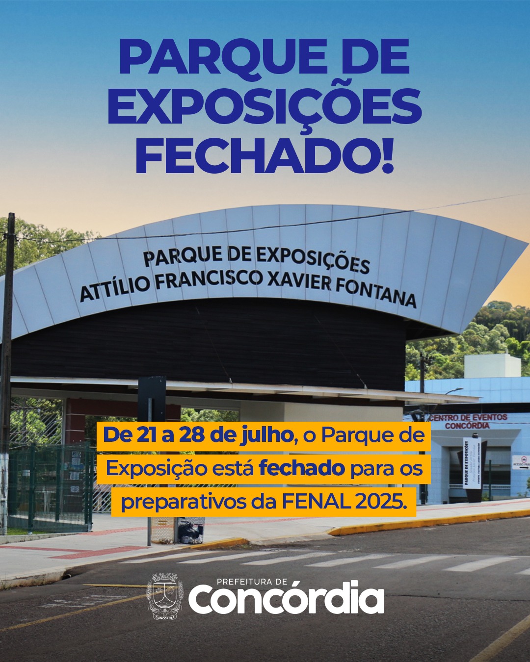 A FENAL é uma das festas mais importantes e tradicionais de Concórdia, movimentando a economia, o turismo e a cultura local. Após os preparativos, o parque será reaberto normalmente na próxima semana, voltando a receber o público para suas atividades habituais. A Administração Municipal pede a compreensão de todos e reforça que a medida é essencial para preservar a integridade de quem frequenta o espaço.