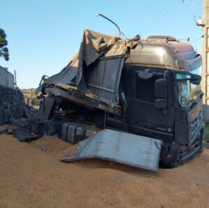 Um grave acidente de trânsito foi registrado na tarde desta quinta-feira (14) em Videira, Santa Catarina, quando uma carreta tombou na localidade de Rio das Pedras. As equipes de resgate, incluindo o SAMU e o Corpo de Bombeiros, foram acionadas para atender à ocorrência, mas foram surpreendidas pelo comportamento agressivo do motorista, de 37 anos. Ele portava um facão e uma faca, ameaçando os socorristas e se recusando a deixar o veículo, o que levou ao afastamento das equipes e ao pedido de apoio policial.