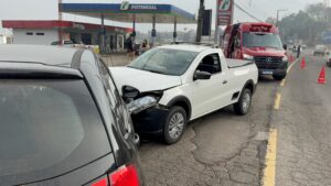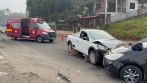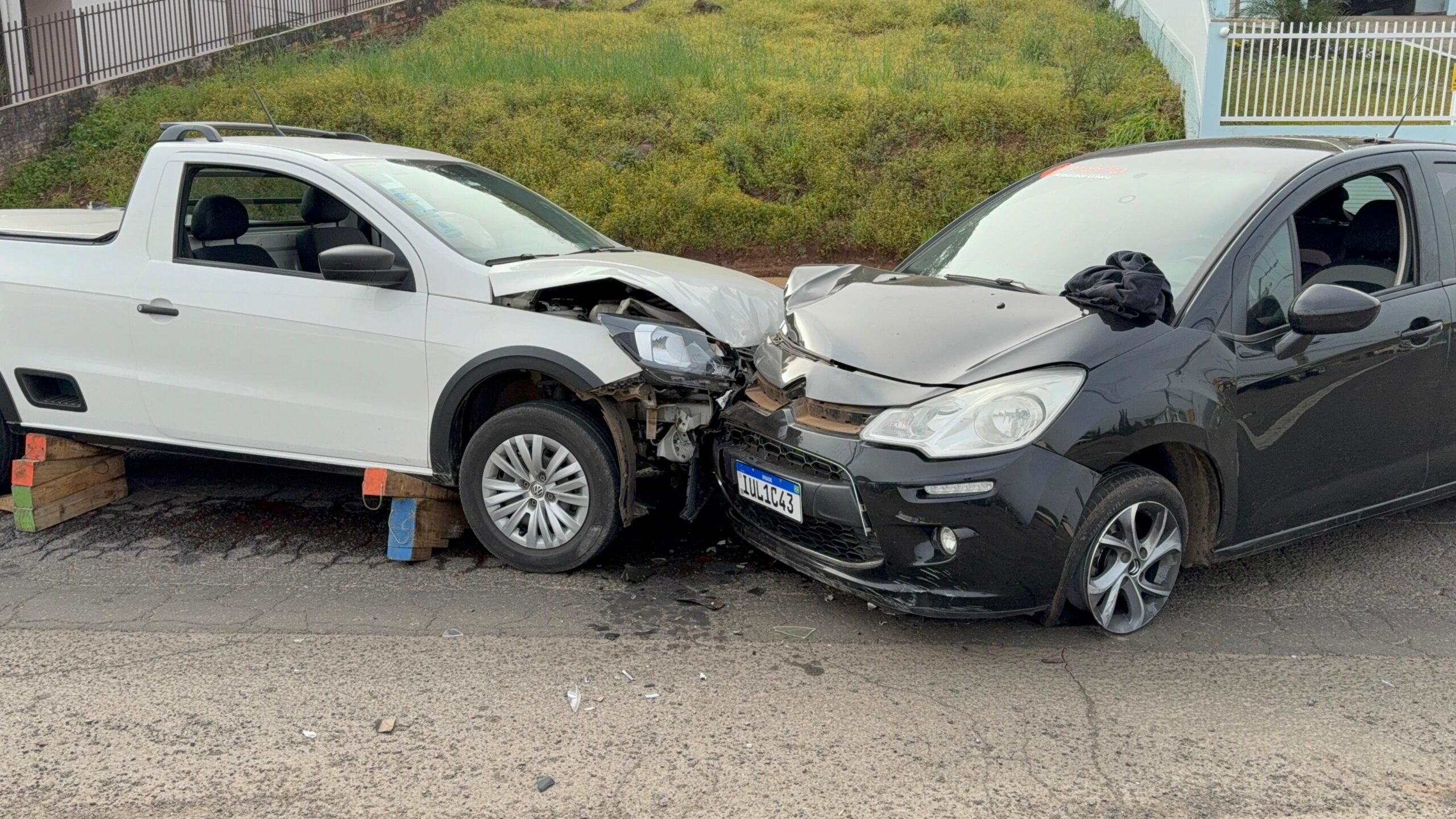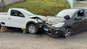 Um acidente de trânsito foi registrado na manhã desta quinta-feira (14) em Concórdia, em frente ao Posto Potencial, sentido bairro Guilherme Reich. A colisão frontal envolveu uma caminhonete Volkswagen Saveiro/Robust e um automóvel Citroën.