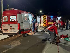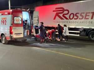 Um acidente envolvendo uma motocicleta e um caminhão foi registrado na noite desta segunda-feira (1º), na Rua Senador Attilio Fontana, em Concórdia. A colisão mobilizou equipes de resgate, que prestaram atendimento rápido à vítima no local.