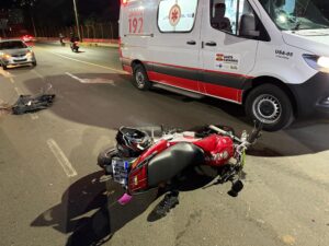O motociclista sofreu uma fratura na perna em decorrência do impacto e precisou ser encaminhado para atendimento médico no Hospital São Francisco. As causas do acidente não foram informadas, e a ocorrência contou com o apoio do Corpo de Bombeiros Voluntários.