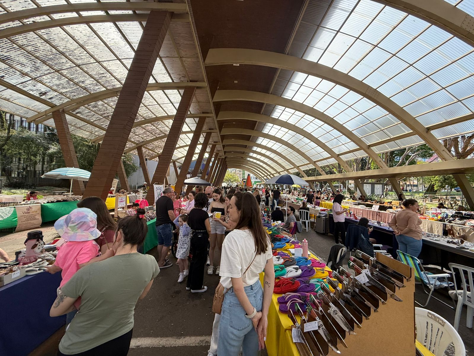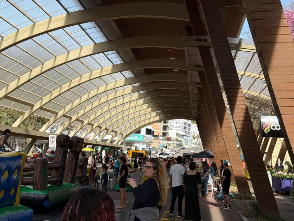 O sábado ensolarado, 13 de setembro, trouxe movimento extra à Praça Coberta com a realização da Feira da Rua Coberta, atraindo moradores e visitantes para prestigiar os expositores locais. Além dos tradicionais produtos, como artesanatos, alimentos e itens regionais, a programação contou com brinquedos infláveis, pipoca e algodão doce, garantindo diversão para as crianças e um clima de lazer para toda a família.