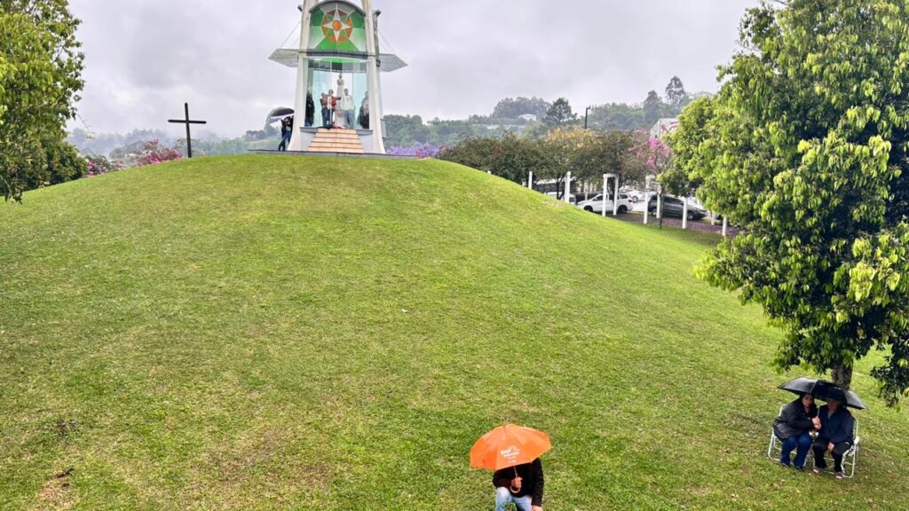 A fé superou o mau tempo neste domingo (21), em Concórdia, durante a Romaria de Nossa Senhora da Salete. Mesmo debaixo de chuva e com a procissão cancelada devido às condições climáticas, centenas de fiéis lotaram o Santuário de Nossa Senhora da Salete para participar da 60ª edição do evento, que neste ano coincidiu com o Jubileu da Igreja Católica.