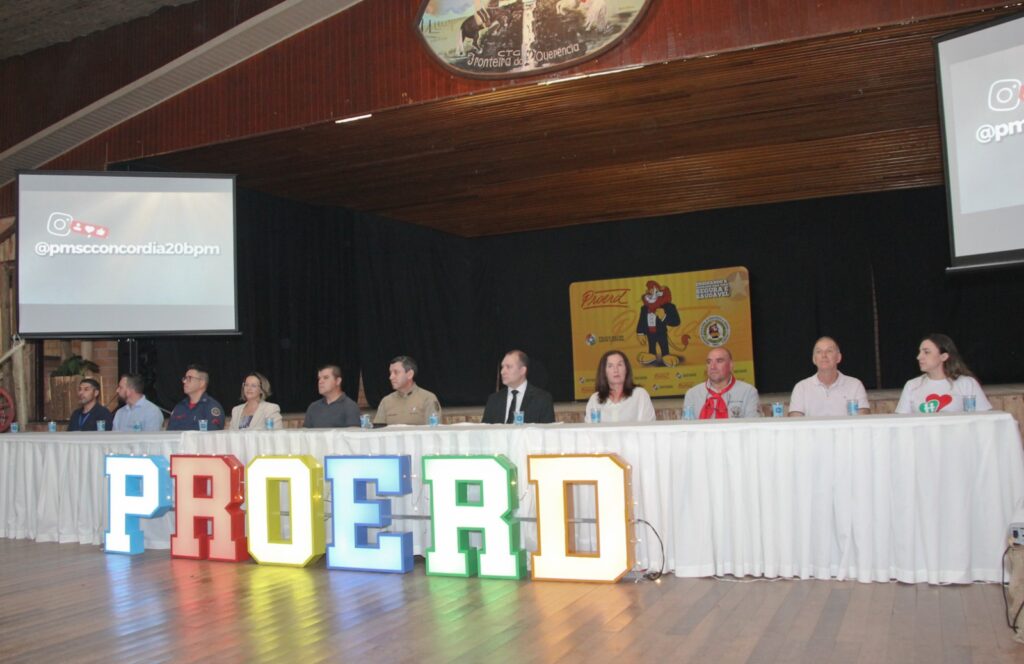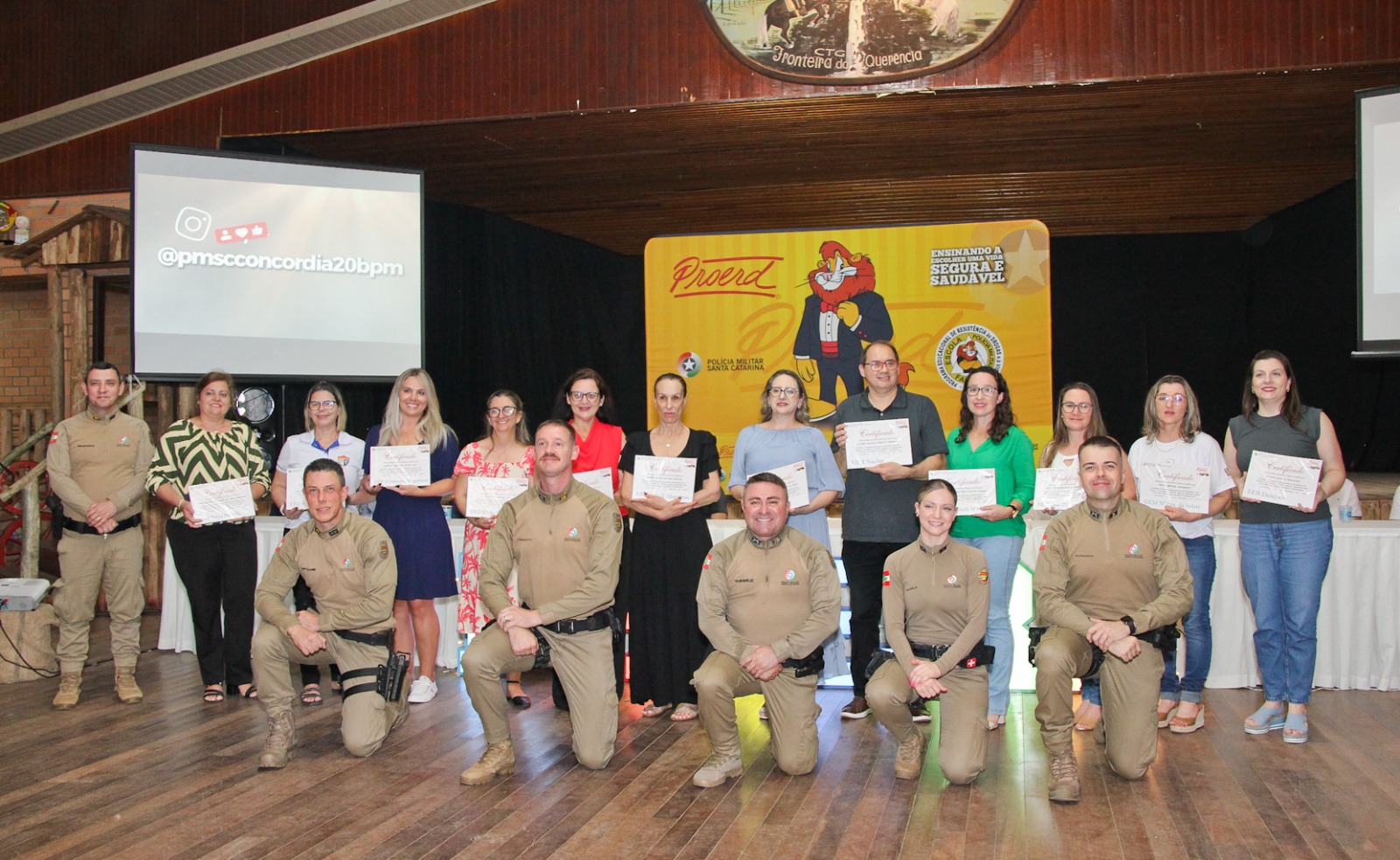 As turmas, acompanhadas de seus familiares, foram recebidas pelo comandante do 20º Batalhão de Polícia Militar de Concórdia, Tenente-Coronel PM Carmiliano do Amarante; pelo coordenador do PROERD e subcomandante da unidade, Major PM Claudemir Adelino Ronning; além dos demais policiais militares instrutores do Programa. A cerimônia contou ainda com a presença de autoridades dos poderes Judiciário, Executivo e Legislativo.