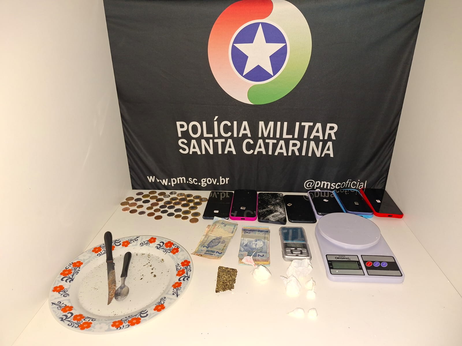 Durante as buscas na residência, os policiais localizaram cocaína, maconha, dinheiro em espécie, balanças de precisão e materiais utilizados para fracionamento das drogas. Um dos envolvidos ainda tentou danificar o próprio celular para evitar a produção de provas. Todos os suspeitos foram encaminhados ao hospital para exames de praxe e, posteriormente, conduzidos à Delegacia de Polícia, junto com os entorpecentes e objetos apreendidos, para os procedimentos legais.