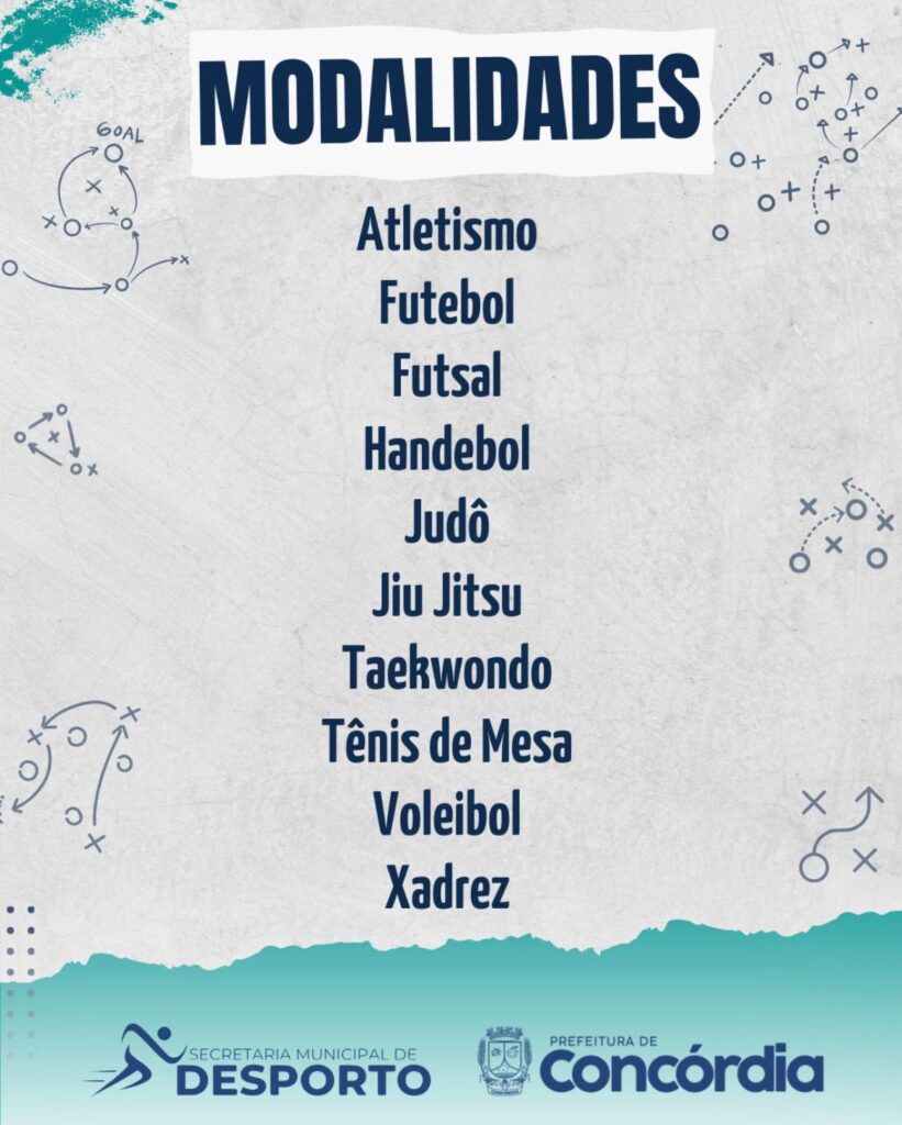 São vagas para modalidades de: Atletismo, Futebol, Futsal e Handebol, Judô, Jiu Jitsu, Taekwondo, Tênis de Mesa, Voleibol e Xadrez;