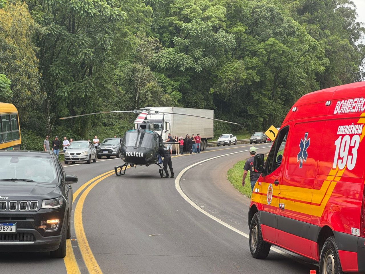 Na tarde deste sábado, uma colisão frontal ocorreu na rodovia BR‑282, mobilizando uma aeronave da Polícia Civil de Santa Catarina bem como equipes do SAMU Aeromédico. Segundo informações iniciais, dois veículos se chocaram frontalmente em local ainda não divulgado. As equipes de resgate foram acionadas imediatamente, e a aeronave foi utilizada para agilizar o atendimento das vítimas. A presença do helicóptero indica a gravidade do acidente e o caráter urgente das ações de socorro.