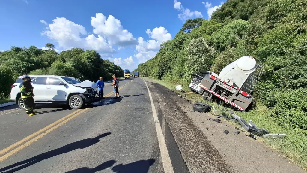 Um acidente de trânsito envolvendo uma carreta, um caminhão de carga e um automóvel movimentou as equipes de socorro na tarde desta quarta-feira (4), em Irani. O acidente ocorreu no km 55 da BR-153, nas proximidades do “trevão” de acesso ao município. A guarnição dos Bombeiros Voluntários de Irani foi acionada para realizar o atendimento e a segurança do local, que possui intenso fluxo de veículos pesados.