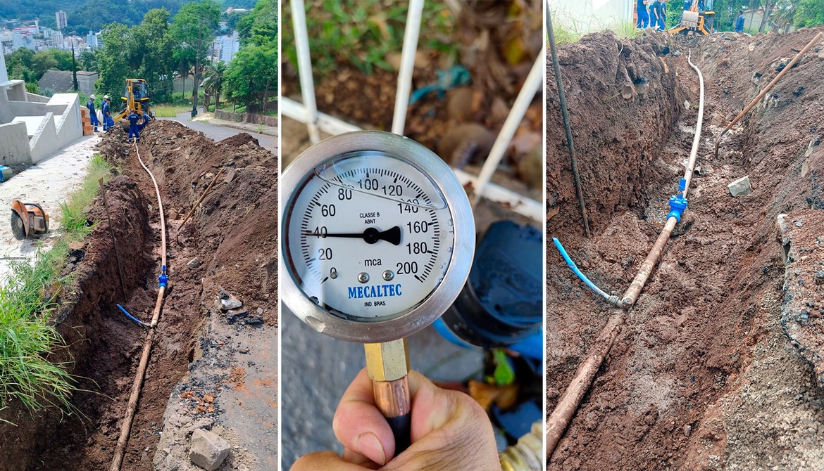 Com a intervenção, os moradores passam a ser abastecidos pelo reservatório existente na Rua Leandro Mário Dalla Costa. Na manhã desta quarta-feira, medições de pressão confirmaram que a mudança deu resultado positivo: 40 MCAs, suficiente para atender todos os clientes – MCA significa metros de coluna de água, unidade usada para medir pressão em sistemas hidráulicos.