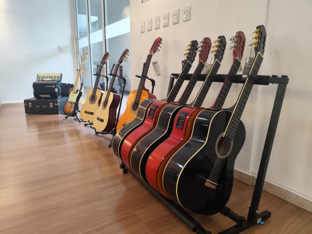 Um investimento que vai representar aprendizado e muita emoção nos mais diversos palcos. A Administração Municipal, por meio da Secretaria de Cultura realizou a entrega de 196 itens, entre instrumentos musicais, acessórios e insumos para o bom funcionamento deles, que serão utilizados pelos professores e alunos das oficinas artísticas da Casa da Cultura. O ato foi realizado na tarde desta segunda-feira, 20, com a presença do prefeito Fábio Luis Ferri, da secretária de Cultura Pamela Sonza e demais servidores.