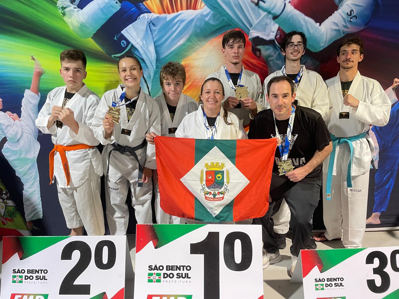 A equipe Acam/Sesport/Brava de Taekwondo, de Concórdia, obteve um desempenho de destaque na 1ª Etapa do Campeonato Catarinense de Taekwondo, realizada neste final de semana em São Bento do Sul. Sob o comando do técnico Matheus Armando Stumpf, o grupo de 12 atletas disputou as categorias infantil, cadete, juvenil, adulto e máster, nas modalidades de luta para faixas pretas e coloridas. No total, o município conquistou 08 medalhas, terminando a competição na 19ª posição geral entre as 42 equipes participantes e mais de 700 competidores inscritos.